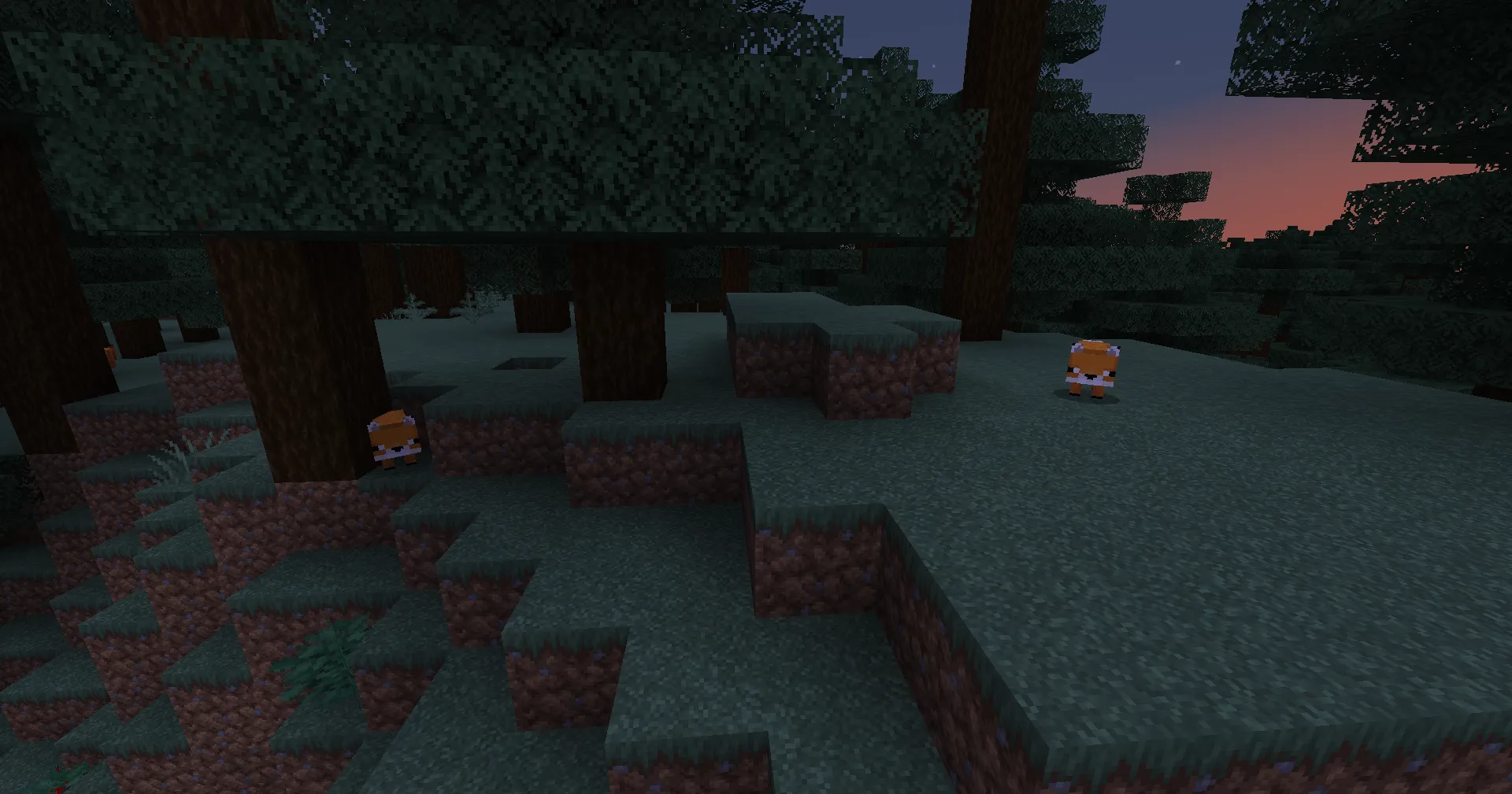 - Прикраса світу: Лисиці додають життя вашим біомам, особливо якщо ви створюєте тайгу або сніговий ліс.
