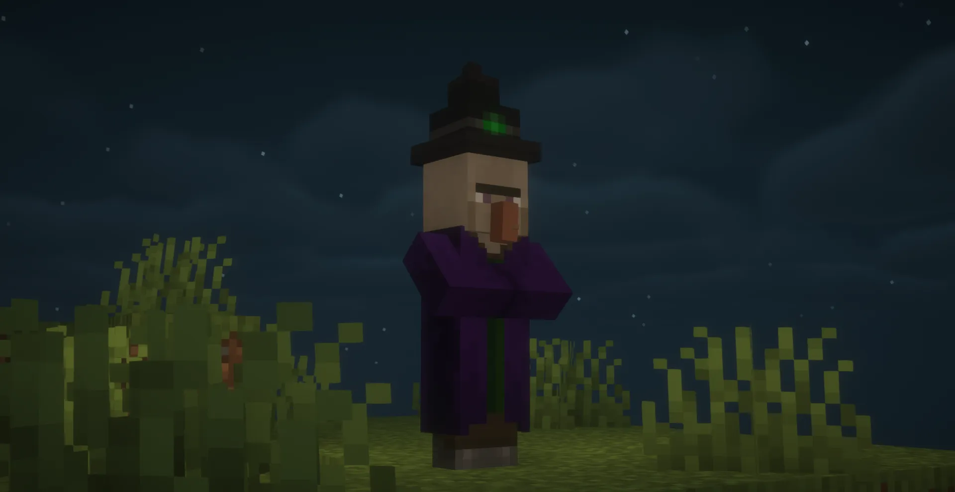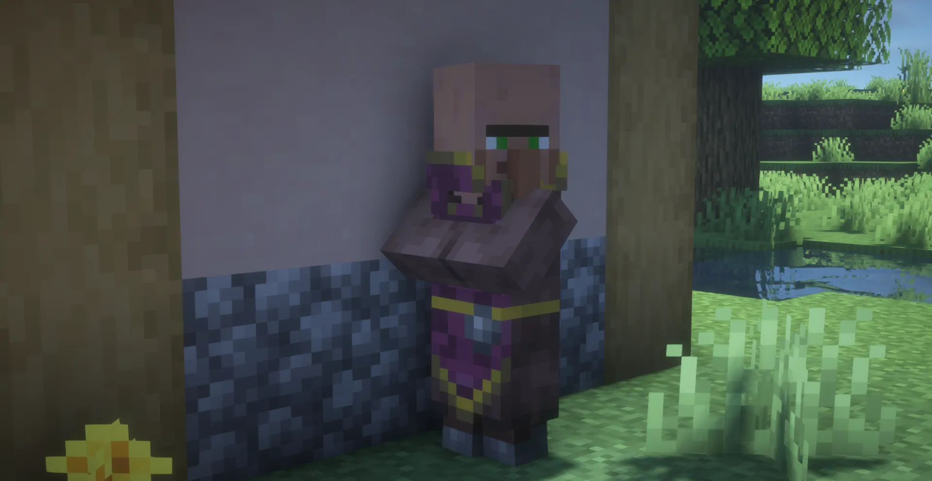 - Священники (жителі в пурпурному одязі) продають редстоуновий пил за смарагди.