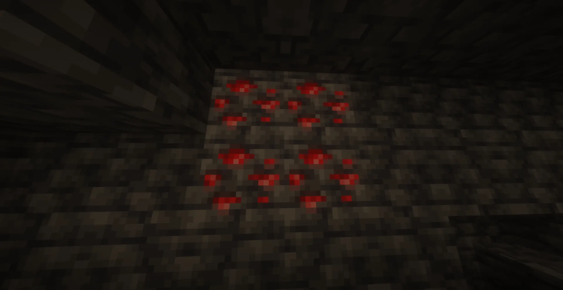 - Редстоуновий пил випадає при видобутку руди редстоуну (Redstone Ore), яка зустрічається в глибоких шарах землі, найчастіше на рівнях Y = -64 до 16.
