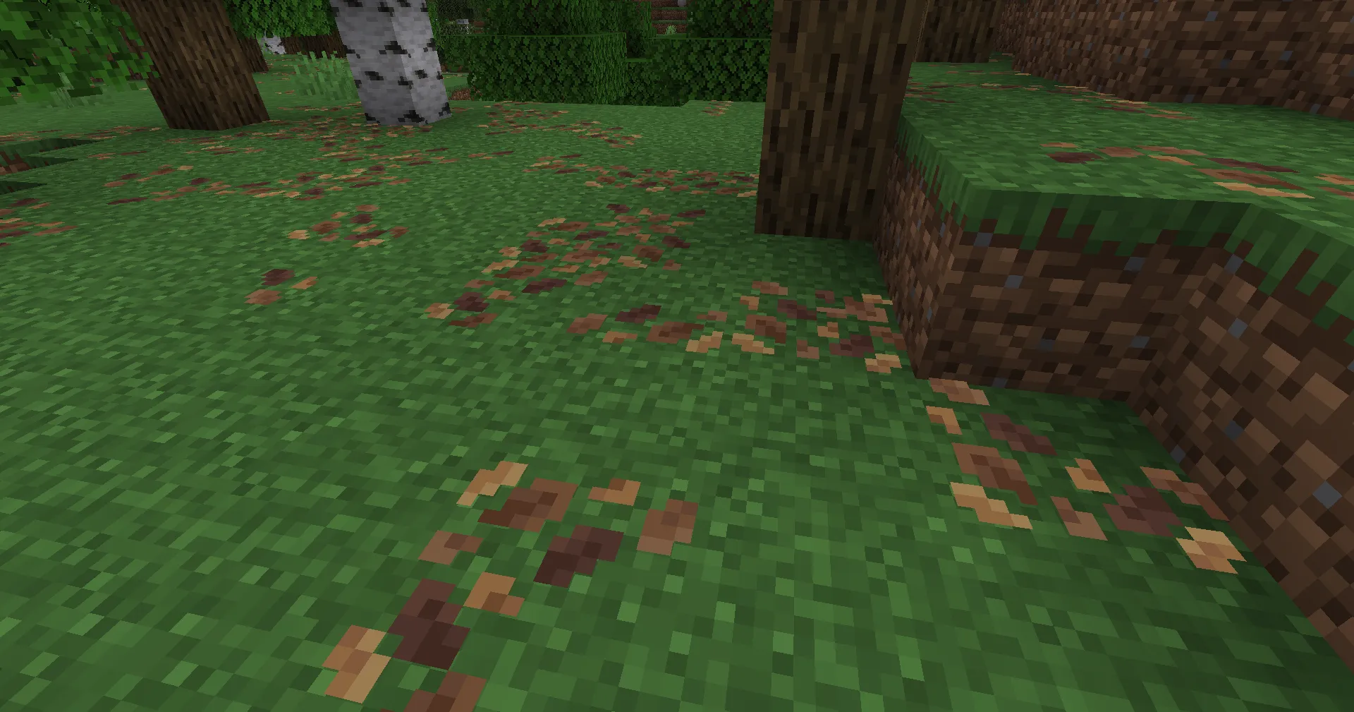Серед головних новинок варто відзначити листяний опад – декоративний блок, що надає світу Minecraft більше реалізму та атмосферності. Він складається з опалого листя, що покриває поверхню землі.
